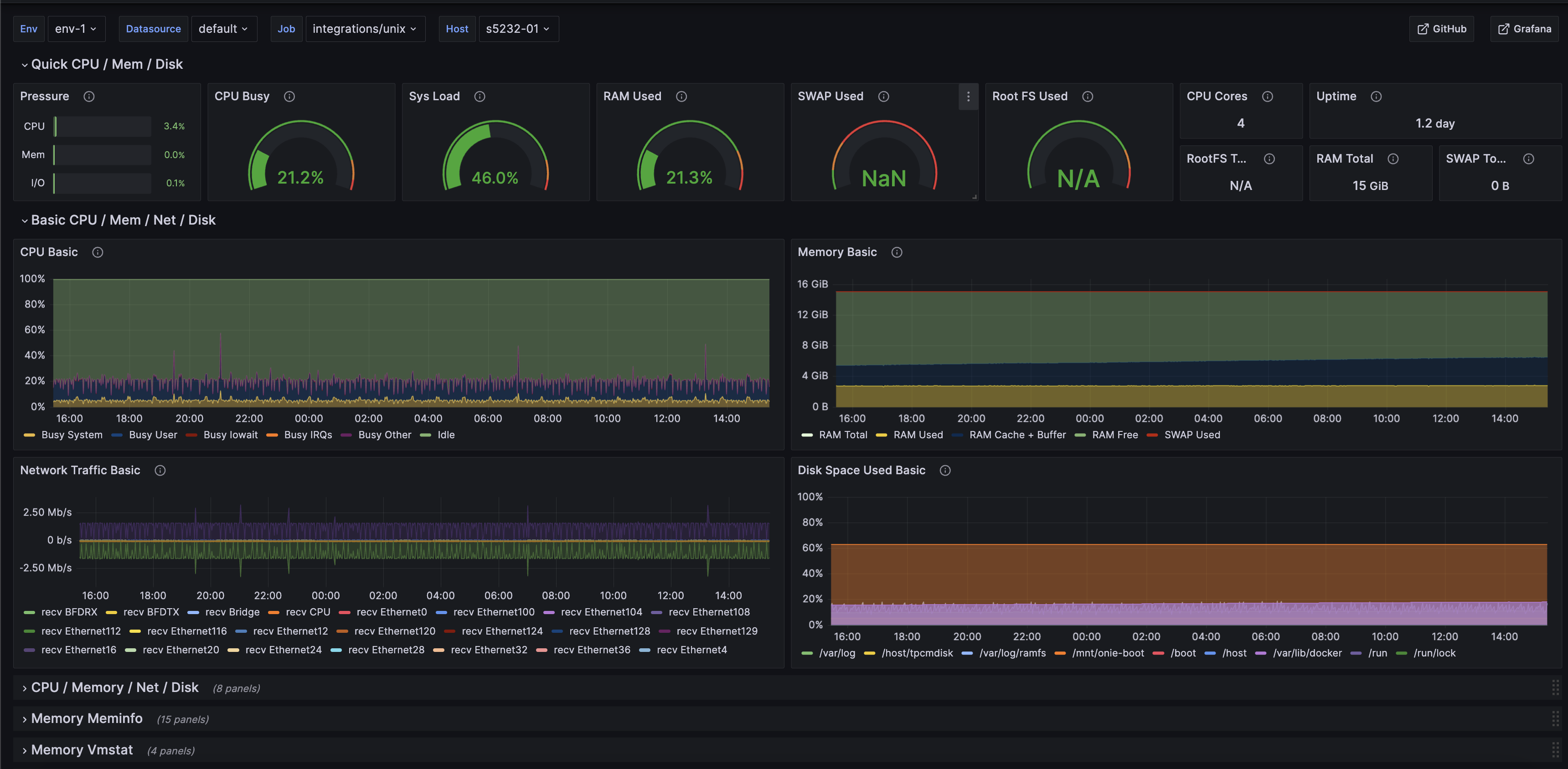 Grafana Node Exporter Full is an opensource Grafana board that provide visualizations for monitoring Linux nodes. In particular case Node Exporter is used to track SONiC OS own stats such as